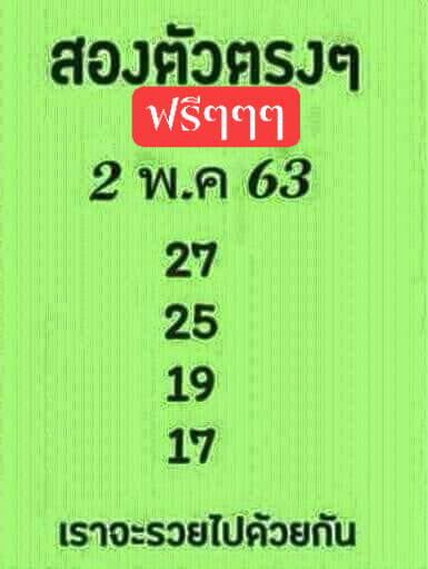 เลขสองตัวที่ให้มาในงวดนี้จะมีชุดไหนที่เข้าเป้า รอฟังผลจากกองสลากได้เลย และย้ำเตือนกันเสมอว่า การเล่นหวยมีความเสี่ยง ทุกข้อมูลที่มาจากแหล่งหวยต่างๆ จะให้เลขที่ไม่เหมือนกัน โปรดใช้ทุกข้อมูลเป็นแนวทางเท่านั้น ไม่มีใครบอกได้ว่าหวยงวดนี้จะออกเลขอะไรได้ ควรเล่นแค่พอดี ขอขอบคุณเจ้าของข้อมูล เลขเด็ด สองตัวบนตรงๆ งวดนี้ ที่แบ่งปันแนวทาง แล้วพบกันใหม่ในงวดต่อไป ขอบคุณครับ
