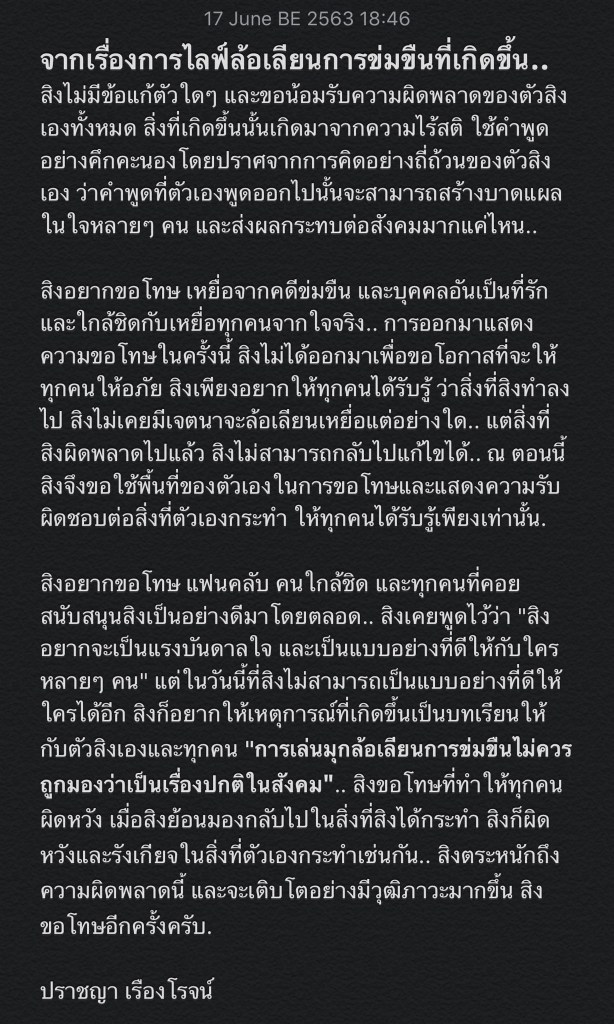 ติดตามเนื้อหาเพิ่มเติมได้ที่ : สิงโต ปราชญา ออกมายอมรับความผิดแบบลูกผู้ชาย